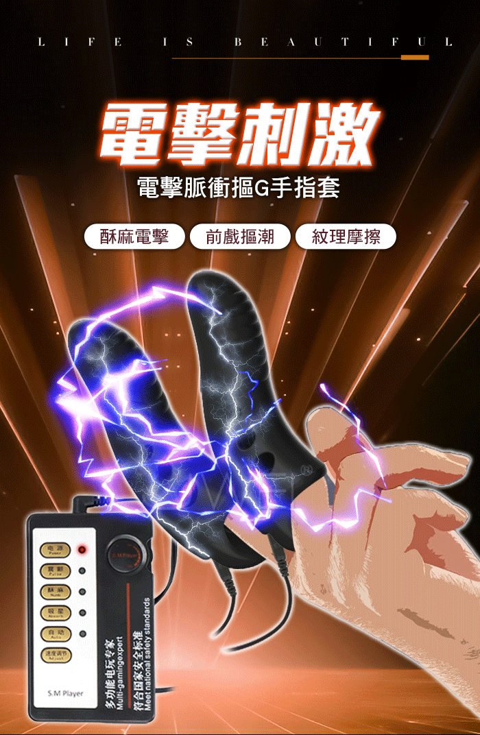 | Electric shock脈衝電擊.10級強度微電流電擊刺激 紋理摩擦雙電擊摳G手指套【中文主機+電擊指套一對】