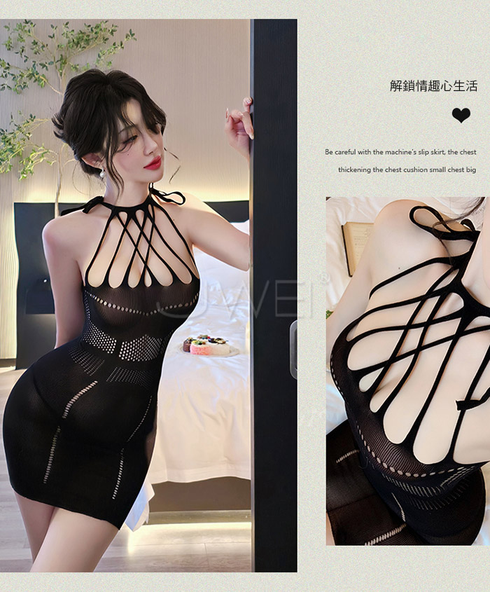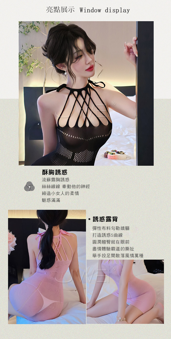 首頁>爵色風華.誘惑流蘇交叉露胸美背鏤空包臀網衣【黑色】