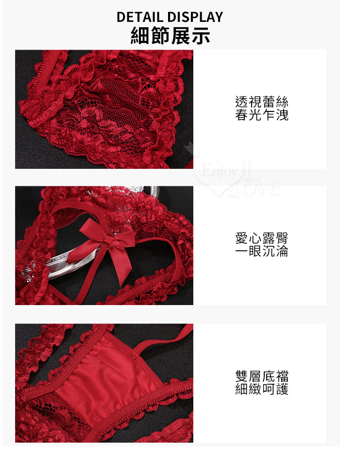 ►您現在的位置:首頁>甜辣愛心露臀蕾絲褲|細緻滾邊 × 蝴蝶結誘惑點綴﹝紅﹞