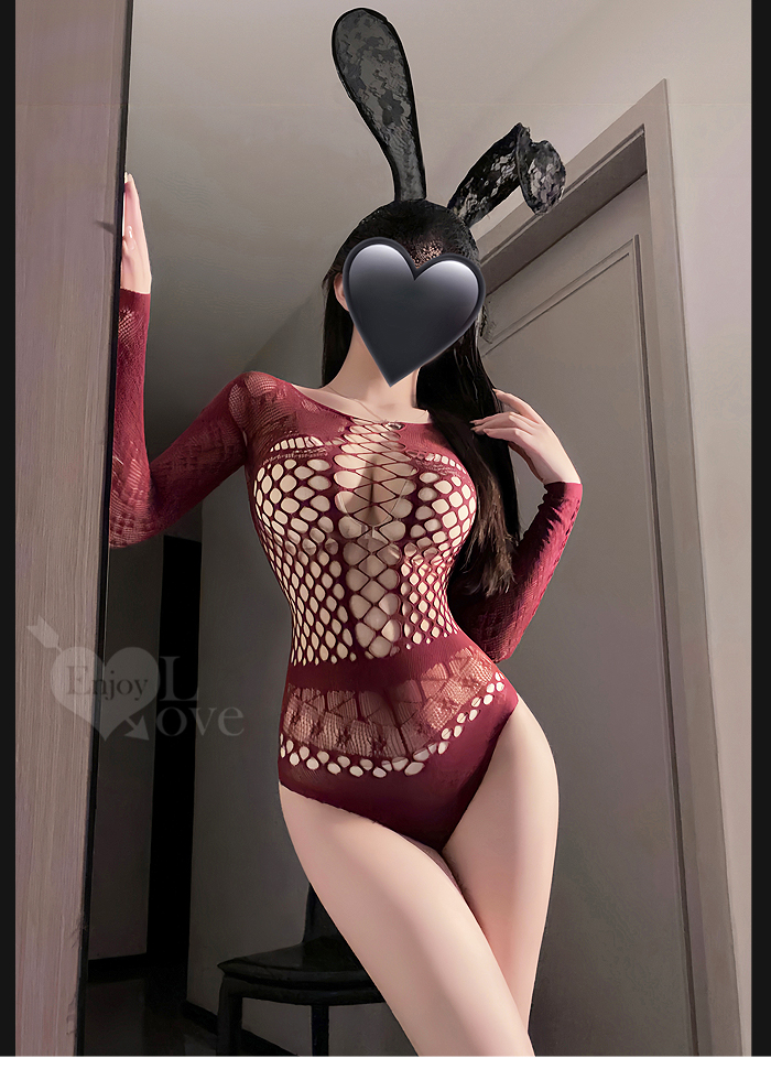 可撕鏤空網紗連身衣|高彈裸膚透視網眼・蜜桃美臀造型