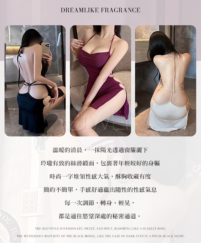 ►您現在的位置:首頁>綺夢暗香.優雅蕩領美背綴腰掛脖後繫帶睡裙【奶咖色】