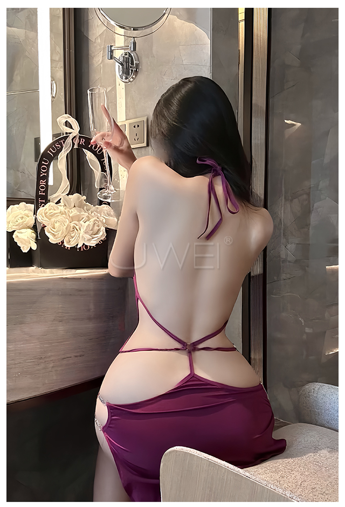 ►您現在的位置:首頁>綺夢暗香.優雅蕩領美背綴腰掛脖後繫帶睡裙【紫棠色】