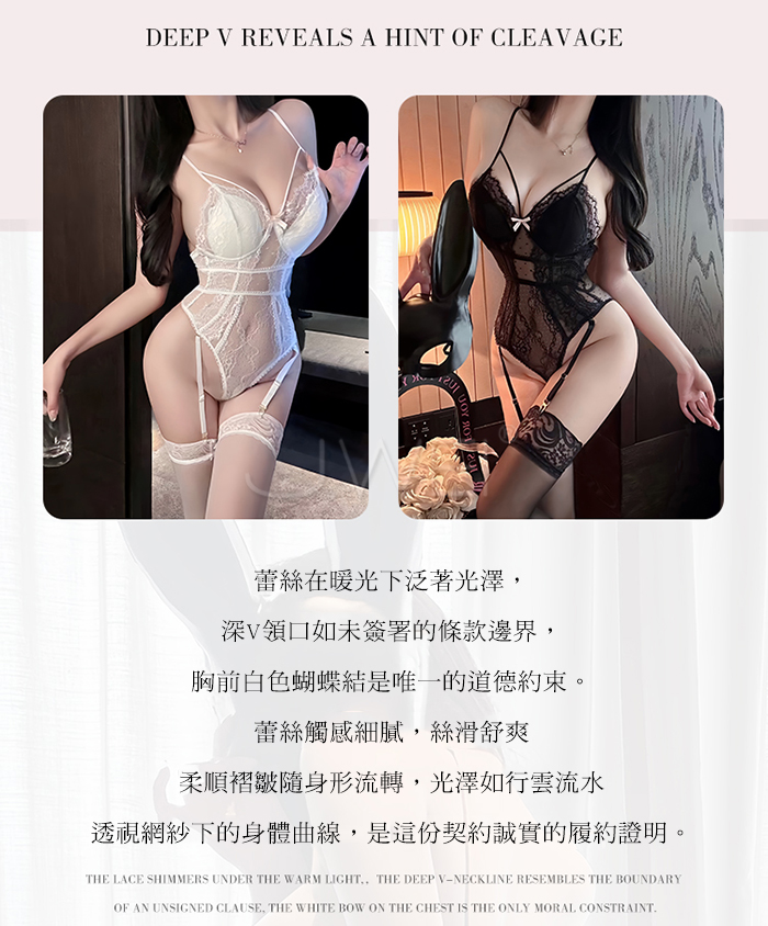 ►您現在的位置:首頁>晝夜甜誘.蕾絲深V領口透視網紗暗扣開襠吊襪帶馬甲【白色】