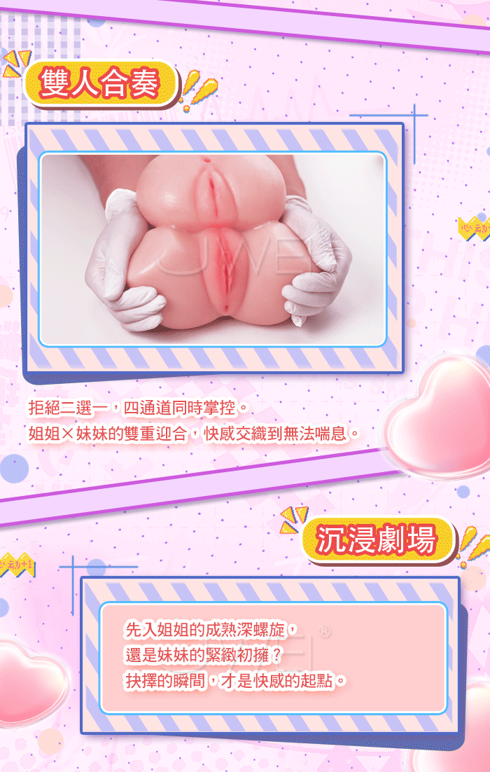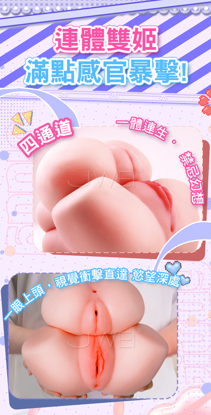 雙姬嬌儿,禁忌の雙子幻想~一體雙享 次元雙生,雙姬合體,解鎖你の獨佔物語!! 4通道玩法多樣,慢玩纏綿+刺激衝刺,妹:緊縮螺紋+仿貞膜;姐:大波浪+吸吮顆粒 擬真肌膚材質,觸碰真實軟妹,清爽觸感 不易出油,你就是這場物語の唯一男主角!! 產品規格 ■尺寸:大小詳如圖片標示 ■材質:TPE ■重量:約2.5kg ■特點:四通道、小陰落紅