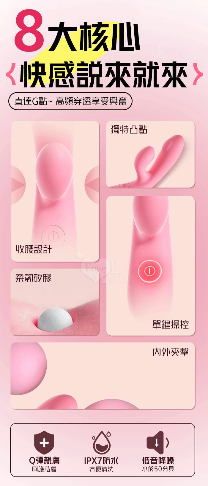 ►您現在的位置:首頁>LILO 來樂.DOUBLE 露娜 ‧ 內外雙震10頻撩撥入體內外刺激衝撞G點按摩棒﹝親膚矽膠/獨特凸點/收腰設計/15微翹角度﹞櫻花粉