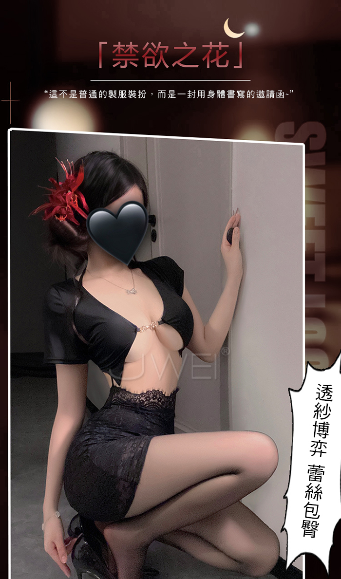 ►您現在的位置:首頁>禁欲之花.性感開胸露乳花蔓蕾絲透膚包臀輕熟秘書裝【短上衣+連身裙+T褲】