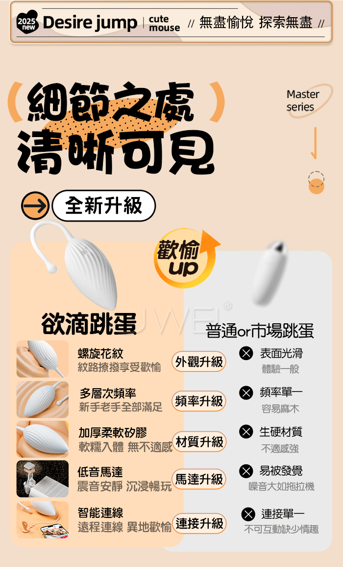 ►您現在的位置:首頁>欲滴.6頻環繞爆震 螺紋剮蹭全域覆蓋 智能遠控情趣跳蛋