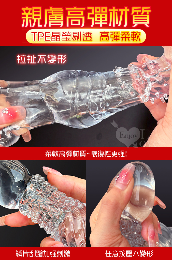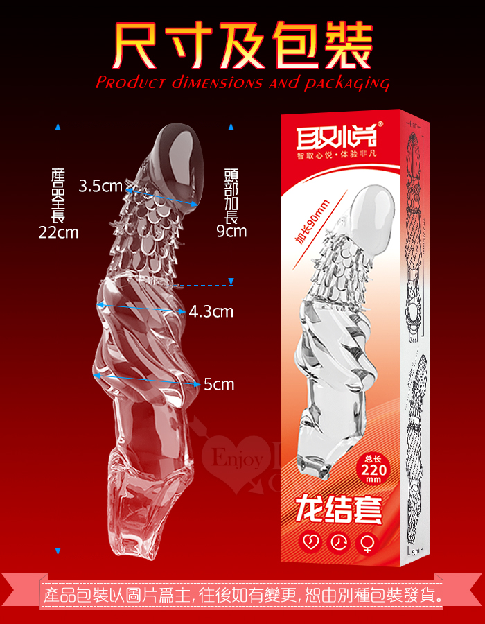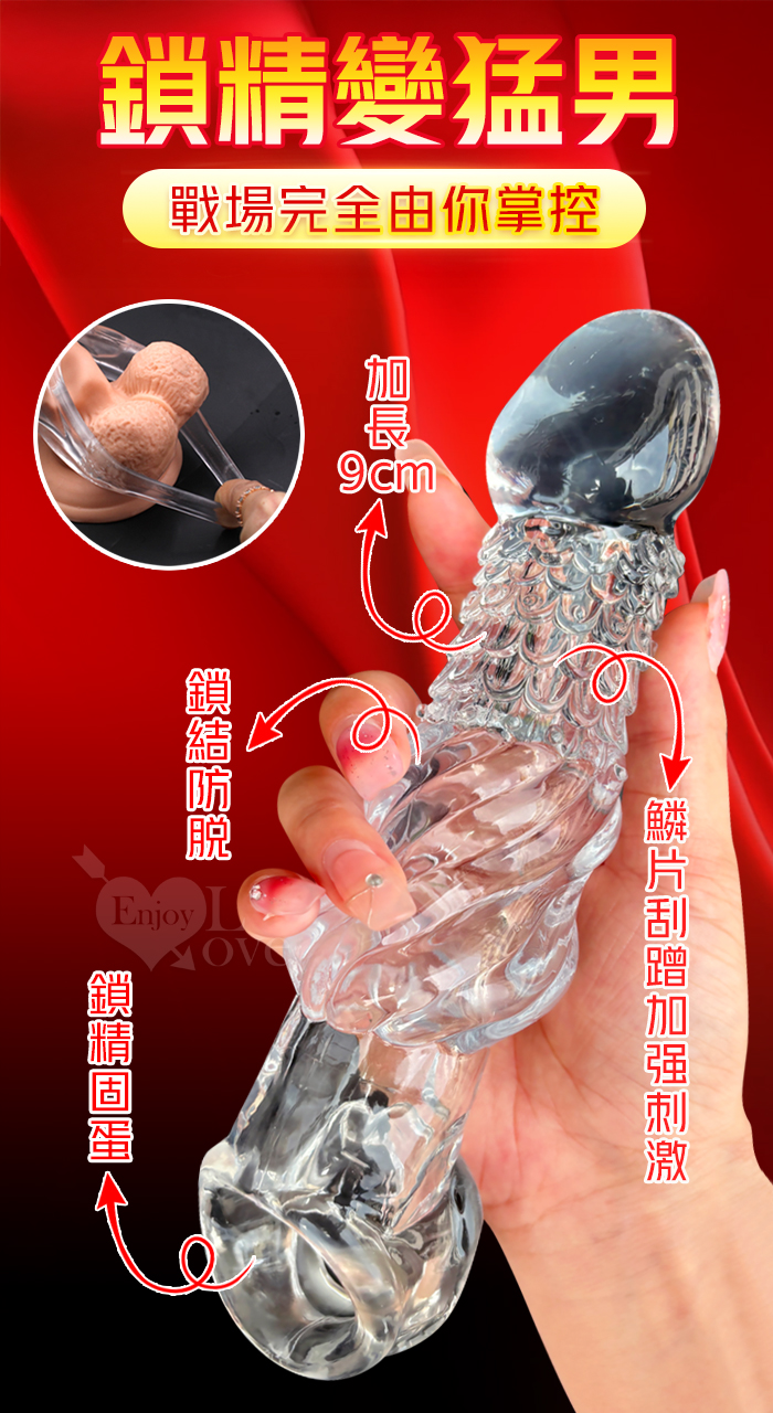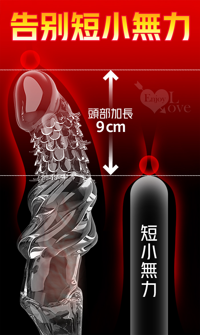 ►您現在的位置:首頁>取悅 ‧ 龍結套 龍麟刺激~長時堅挺`前端實心變粗變大加強套﹝增長9公分+凸粗+束精+套蛋﹞