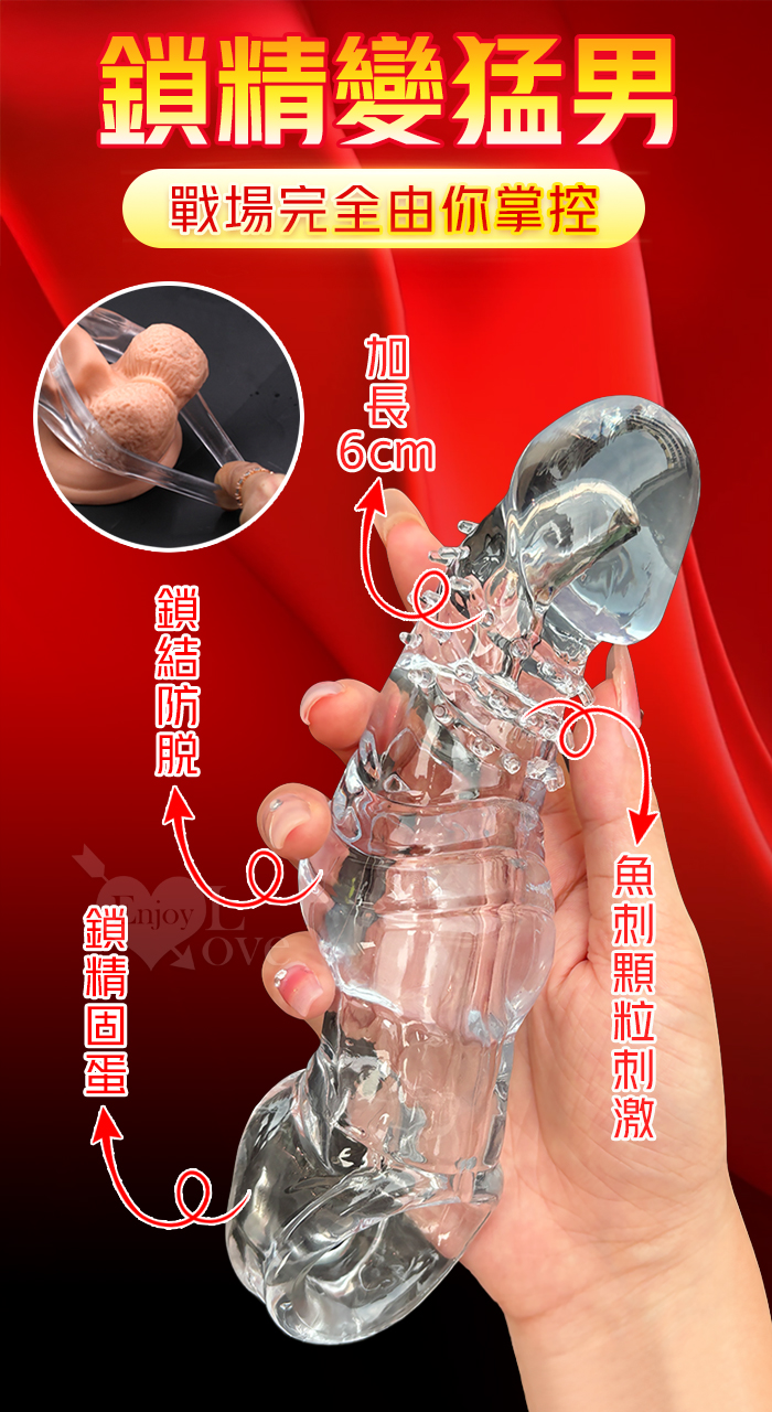 取悅 ‧ 鱼刺套 顆粒刺激~長時堅挺~前端實心變粗變大加強套﹝增長6公分+凸粗+束精+套蛋﹞