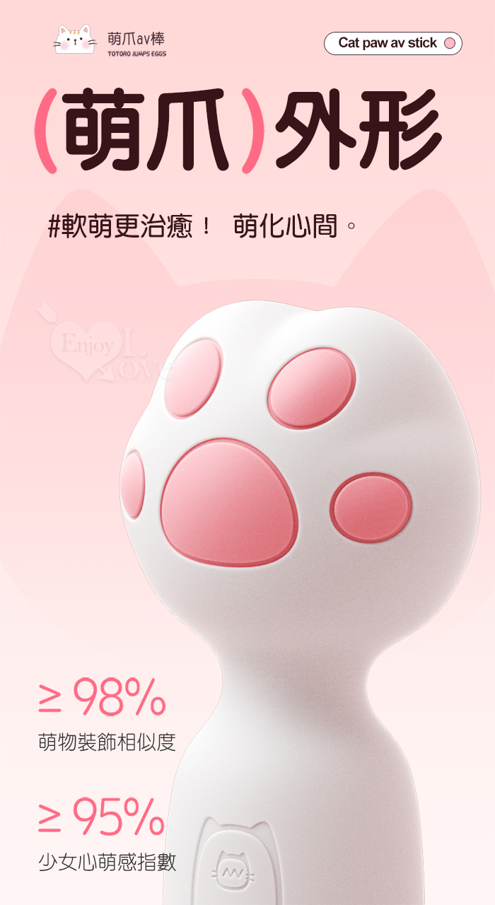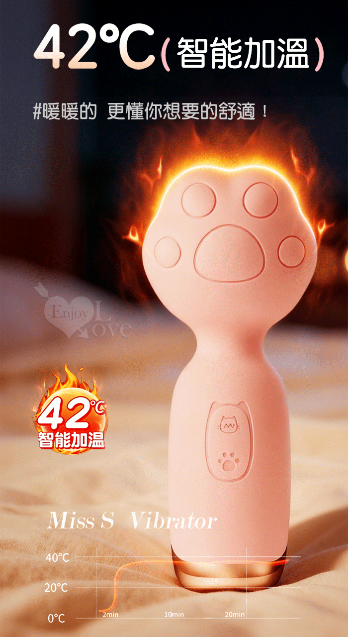 | ROSELEX 萌爪AV棒 ‧ 可愛小貓爪加溫震動棒-10頻震動陰蒂刺激調情自慰 - 粉