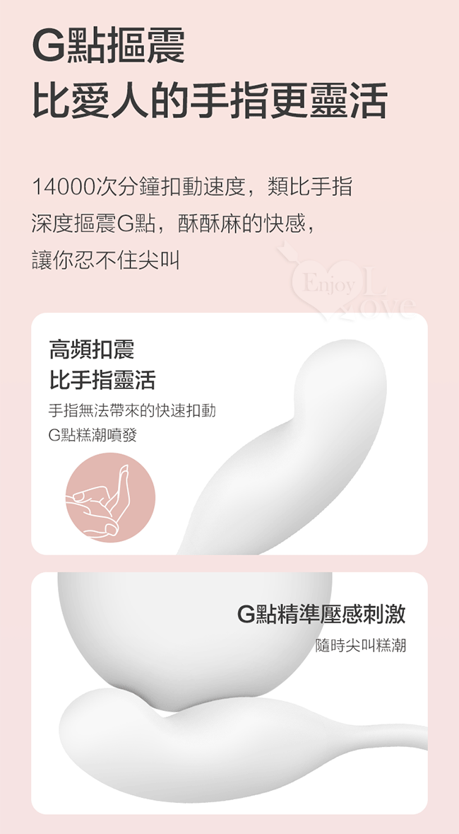 • 尾部模擬手指深度扣動,14000/分鐘扣動轉速,比愛人的手指更靈活,集中扣動G點的同時,有酥酥麻麻的震動感。