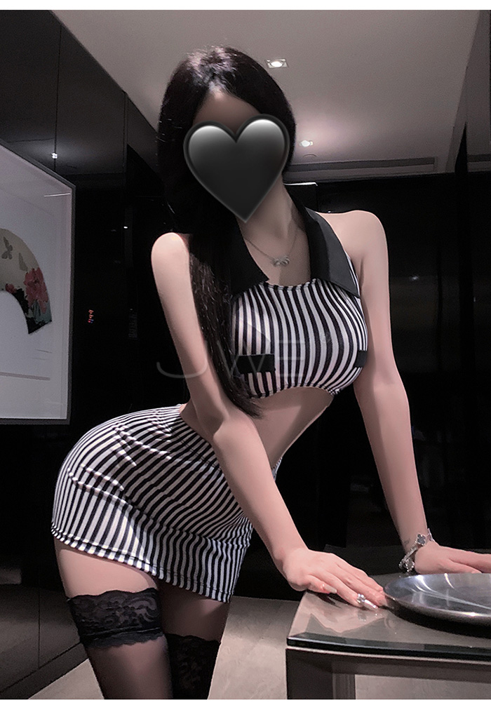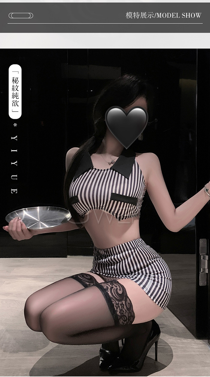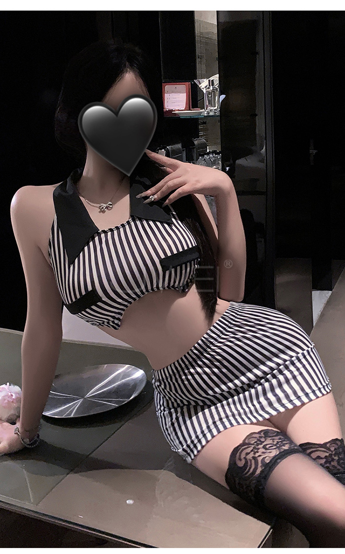 ►您現在的位置:首頁>純欲秘書.條紋裹胸放大胸型露腰美背包臀秘書套裝【上衣+包臀裙+T褲】