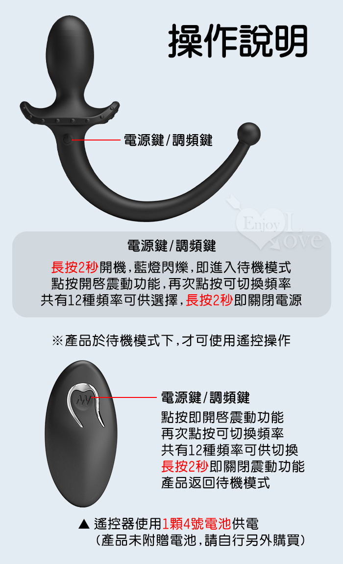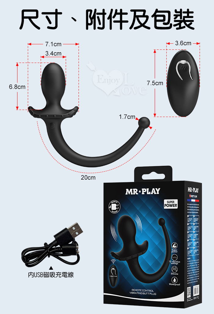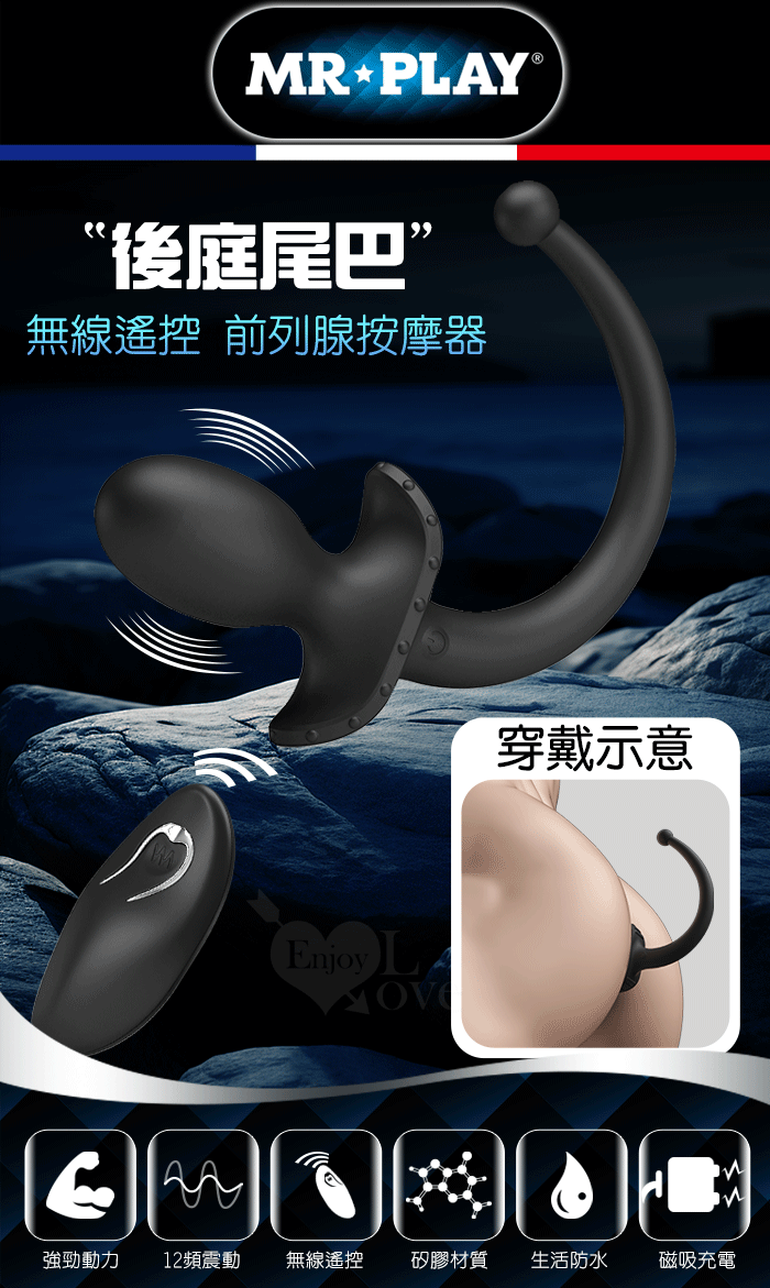 MR‧PLAY 雙頭可用~無線遙控12頻強力震動前列腺-後庭按摩器-男女狗奴扮演尾巴/親膚矽膠/磁吸充電/多樣玩法