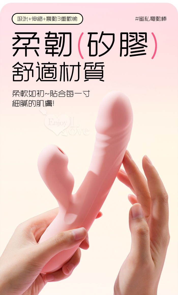 | ROSELEX 蜜私 ‧ 伸⦁震⦁吸 三重爆爽多功能按摩棒﹝10頻伸縮+震動/10頻吮舔動~內外同歡~滑順親膚矽膠﹞
