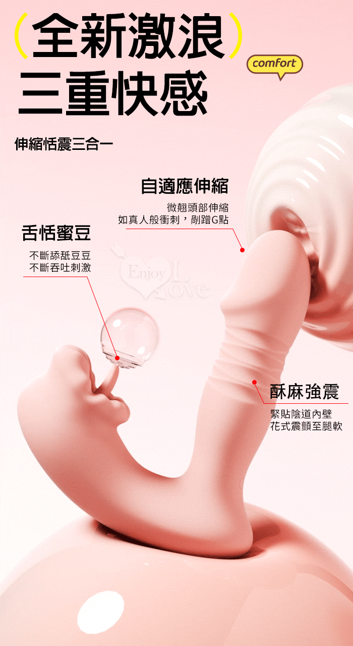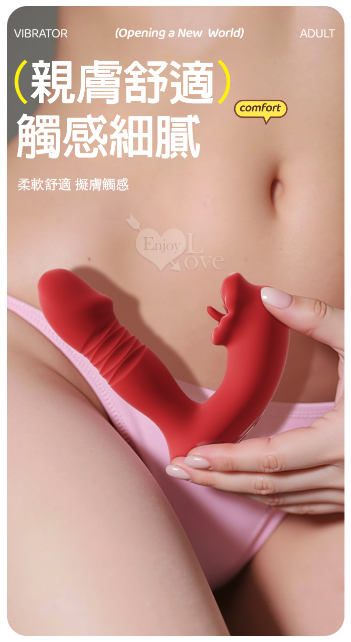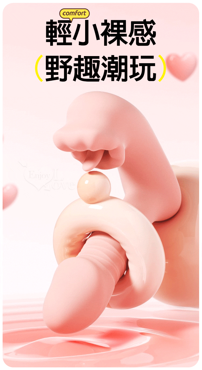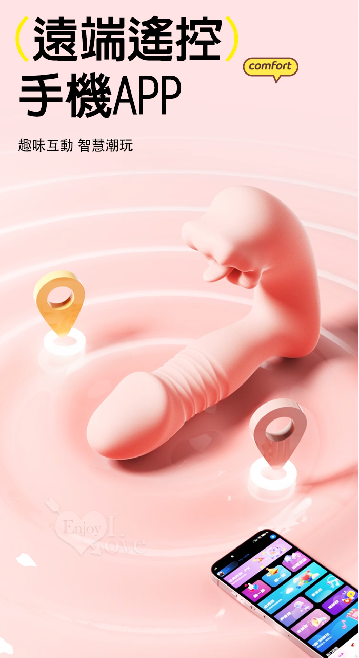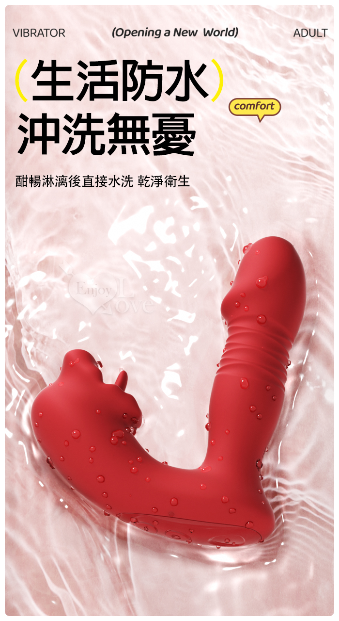 ROSELEX 上舔下頂 入體伸縮舔震三合一 10頻雙馬達貼合穿戴按摩器 - 可手機APP遙控﹝具兩種操控模式﹞粉