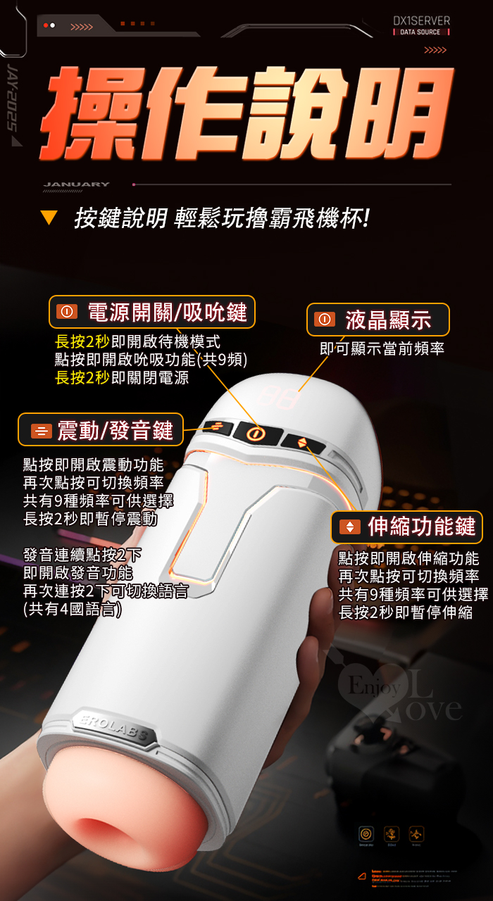 ►您現在的位置:首頁>EROLABS 擼霸全配版 ‧ 智能伸縮/吸吮/震動/語音 緊實肉感自慰鍛練杯﹝液晶數碼9頻伸縮X9頻吸吮X9強震+4國淫聲+耳機﹞黑色