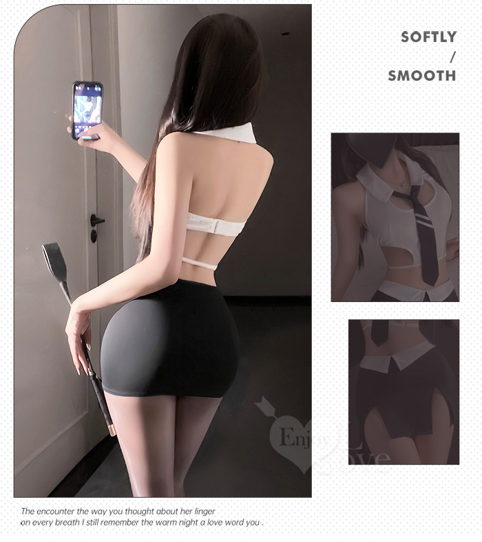 | 秘書角色扮演服!細帶露腰短上衣撞色雙開衩包臀裙四件式套裝