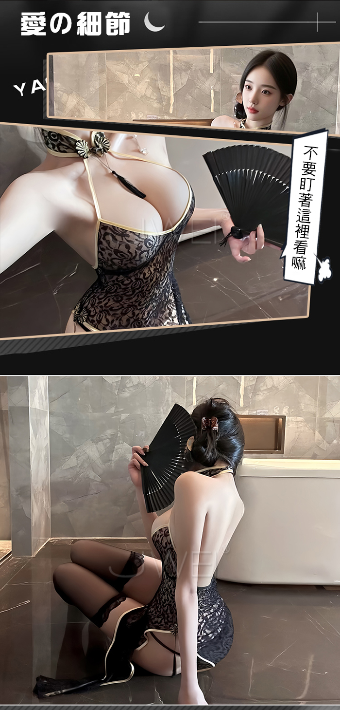 | 墨染鎏金.性感純欲蕾絲花紋低胸開衩美背旗袍【旗袍+T褲】
