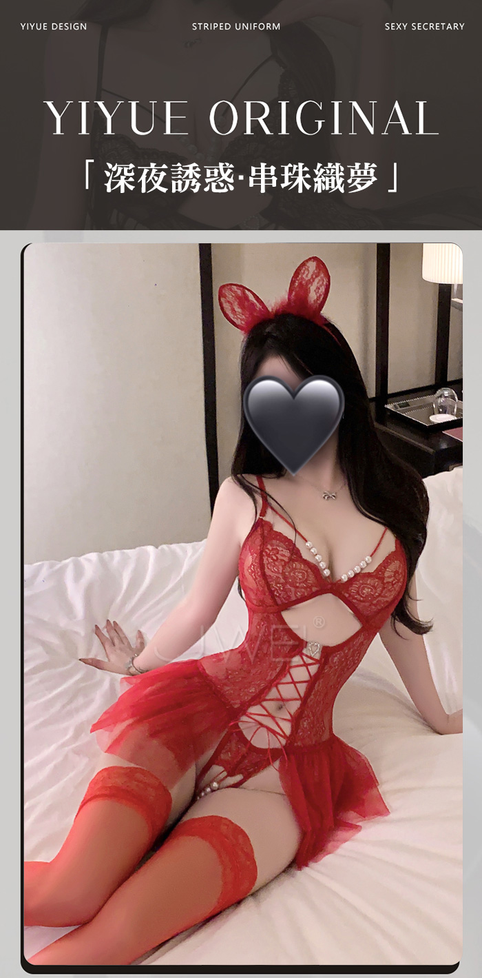 首頁>串珠織夢.深V珍珠飾胸蕾絲繫帶花邊裙擺開襠連體衣【酒紅】